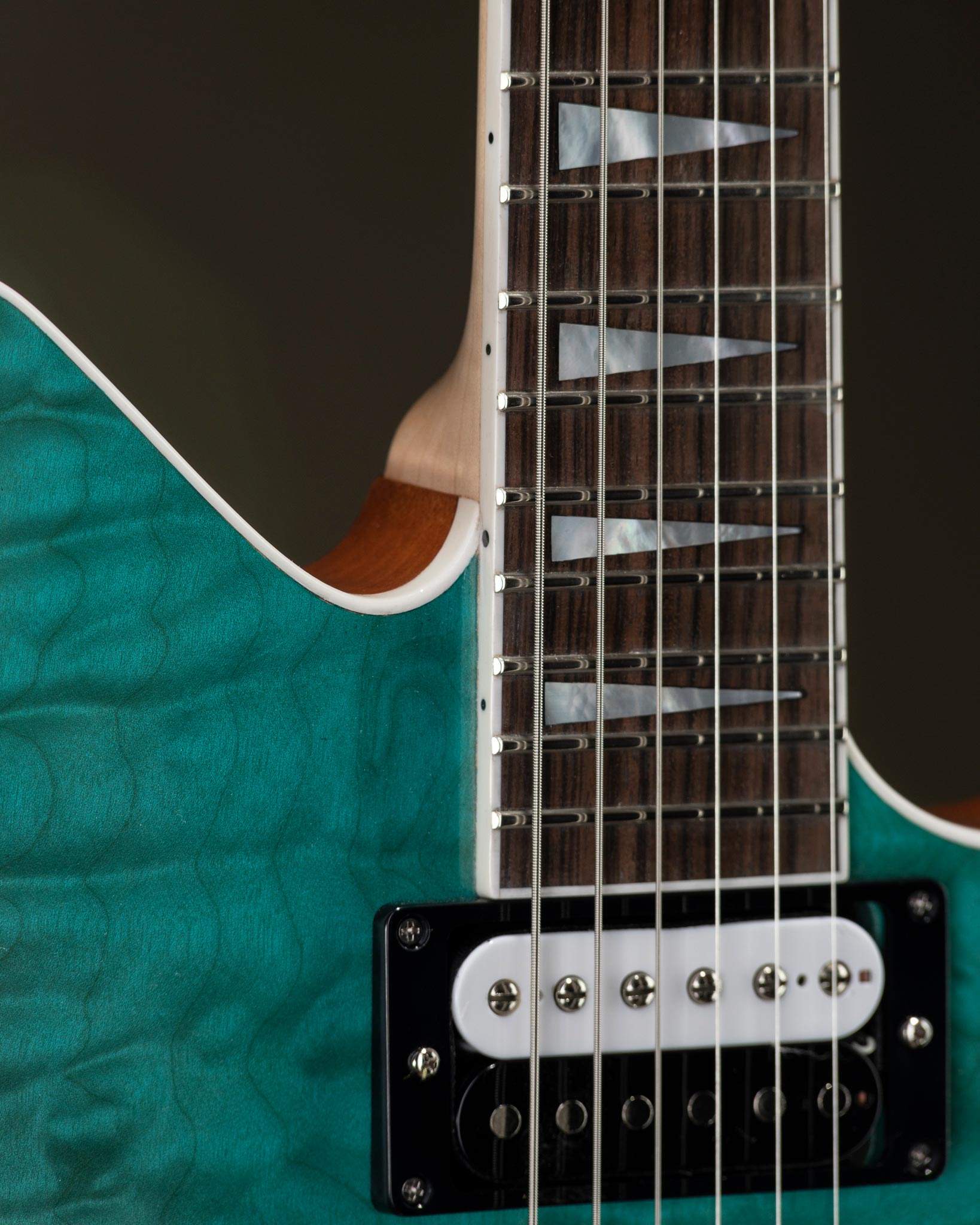 The Billy with Maine Flame Maple neck, Honduras Mahogany Body, and Quilt Maple top.