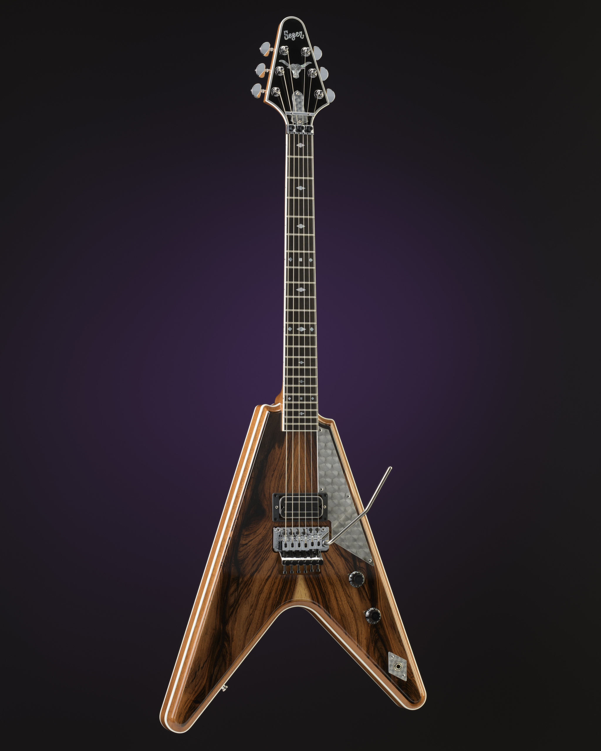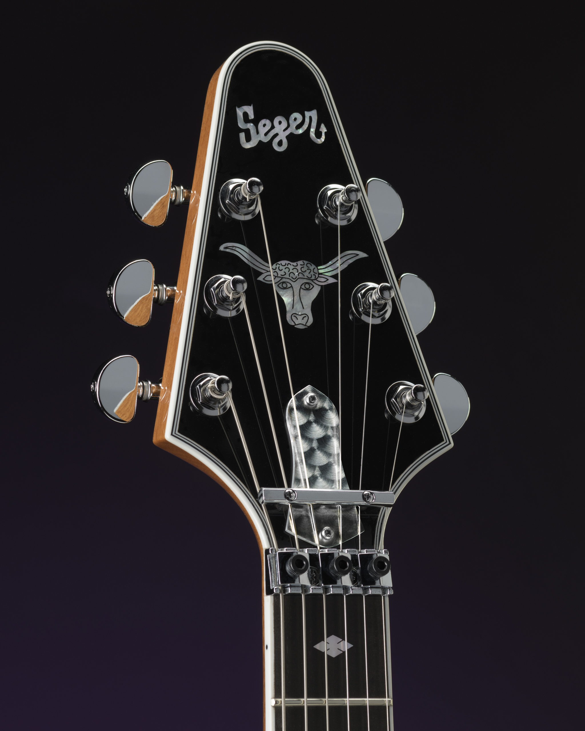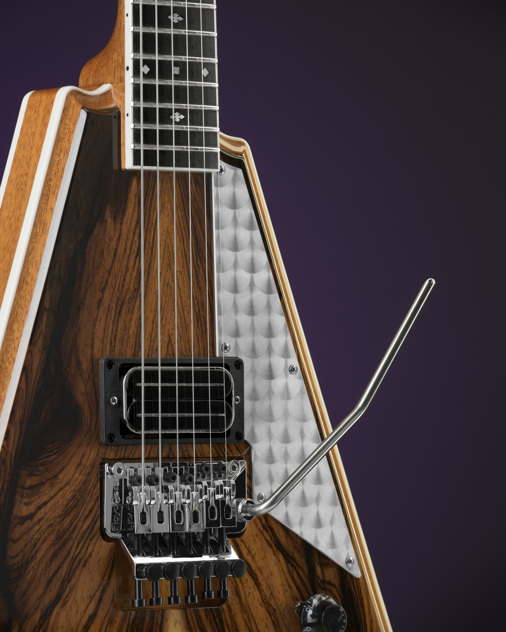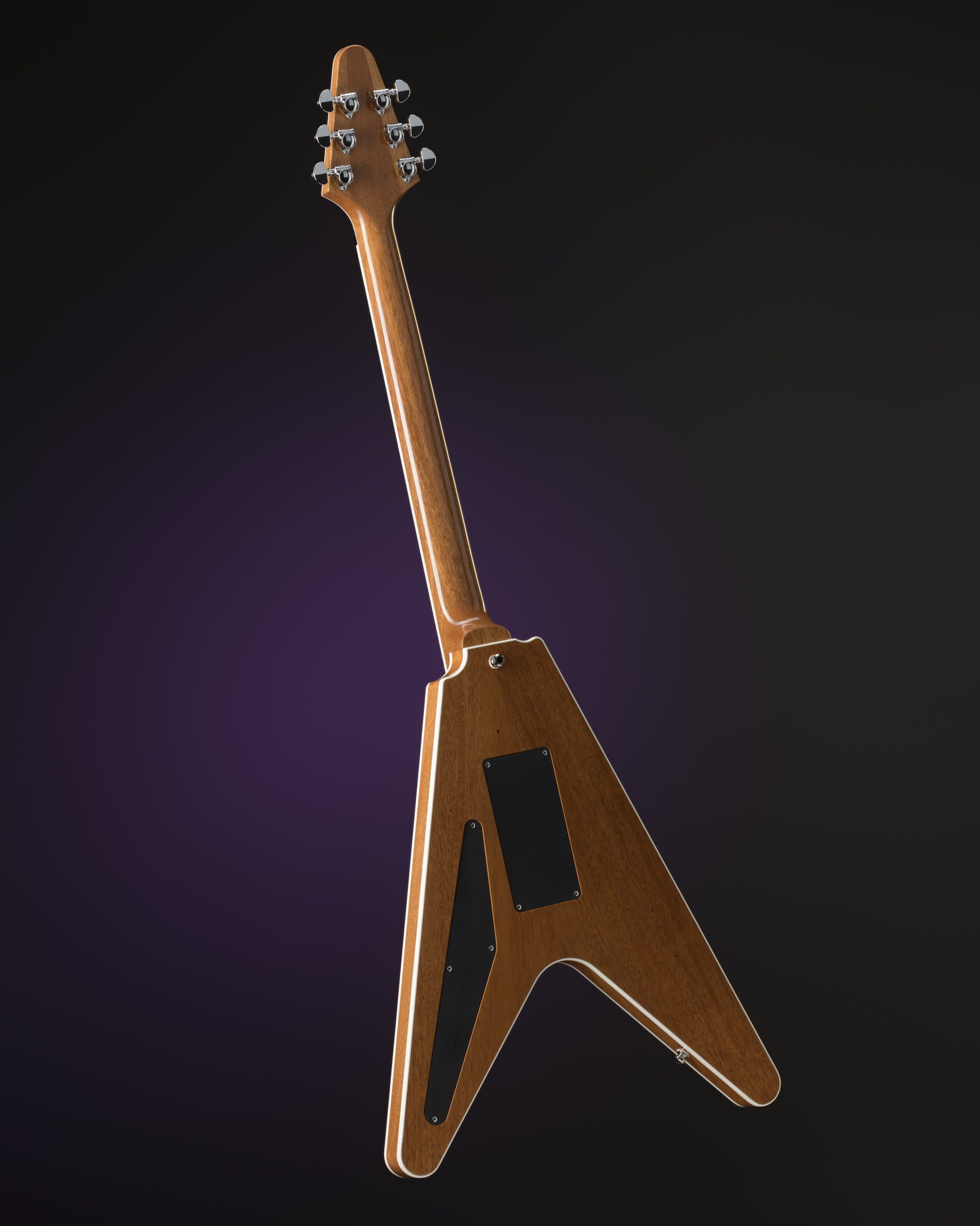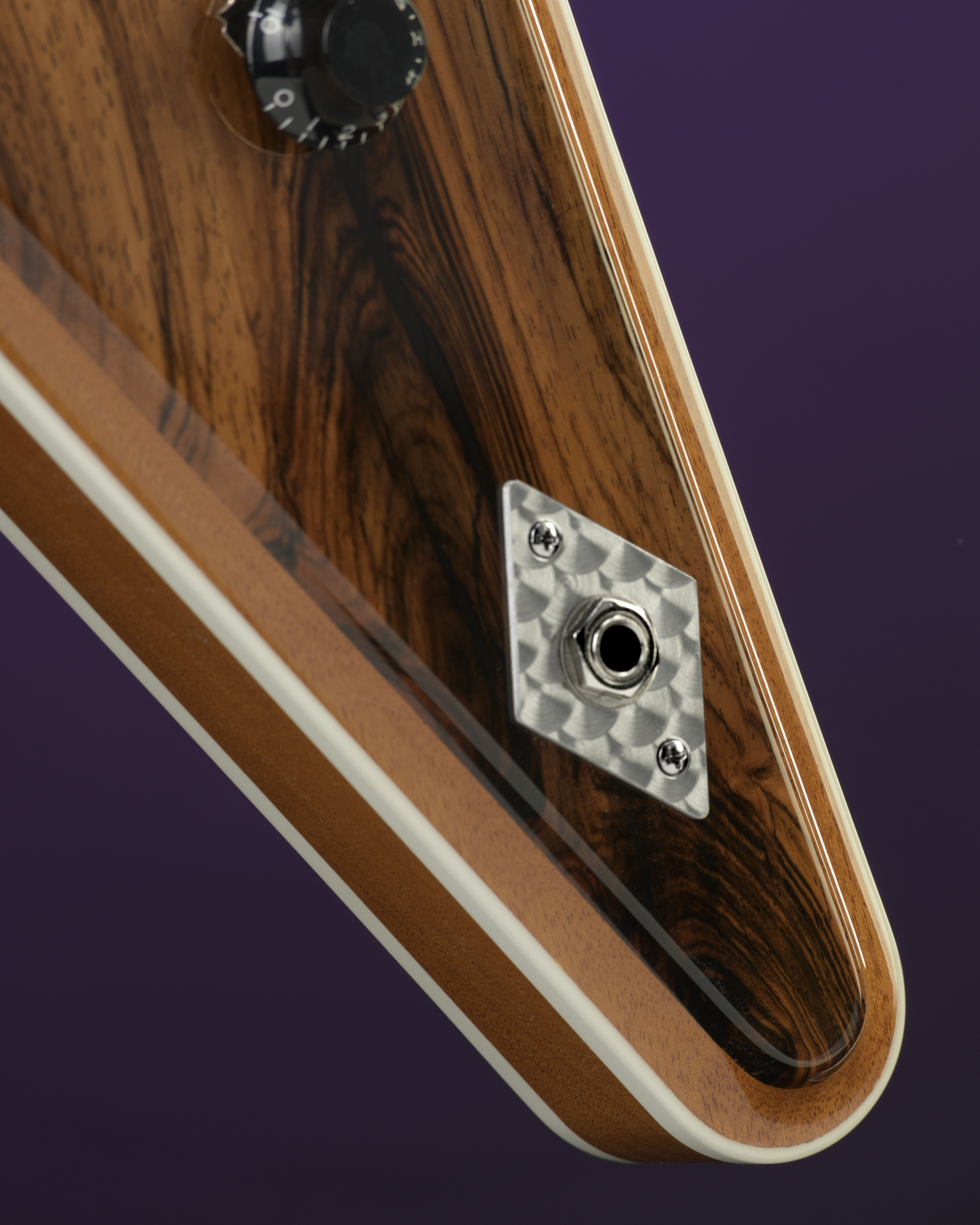 Chevron with a Spanish Cedar Cod with a carve top and Pastel Yellow nitro finish.