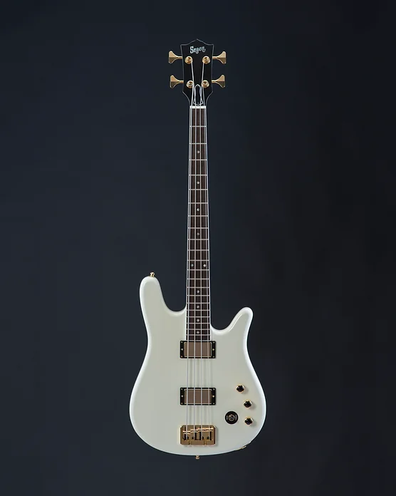 White DC Bass with Maine Rock Maple set neck and Texas Alder body.