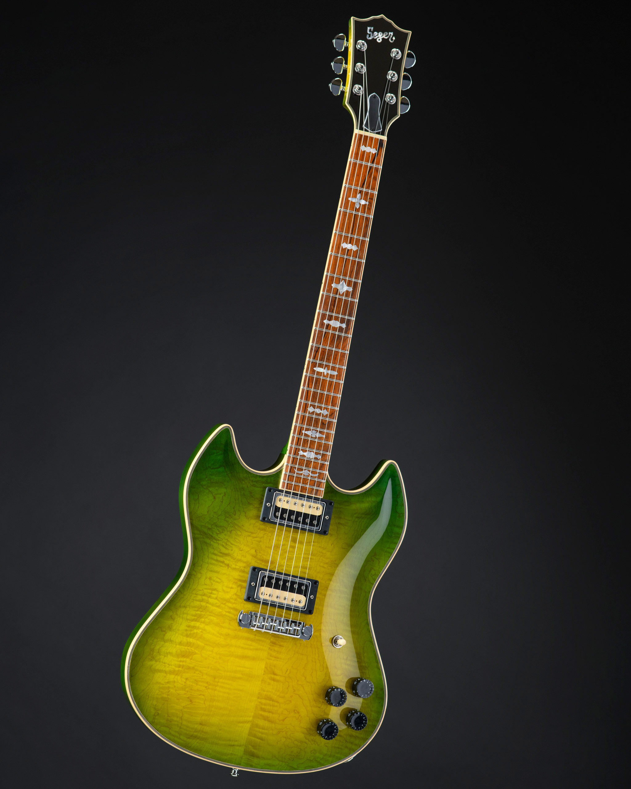 YG with Maine Curly Maple archtop and slimeburst finish.