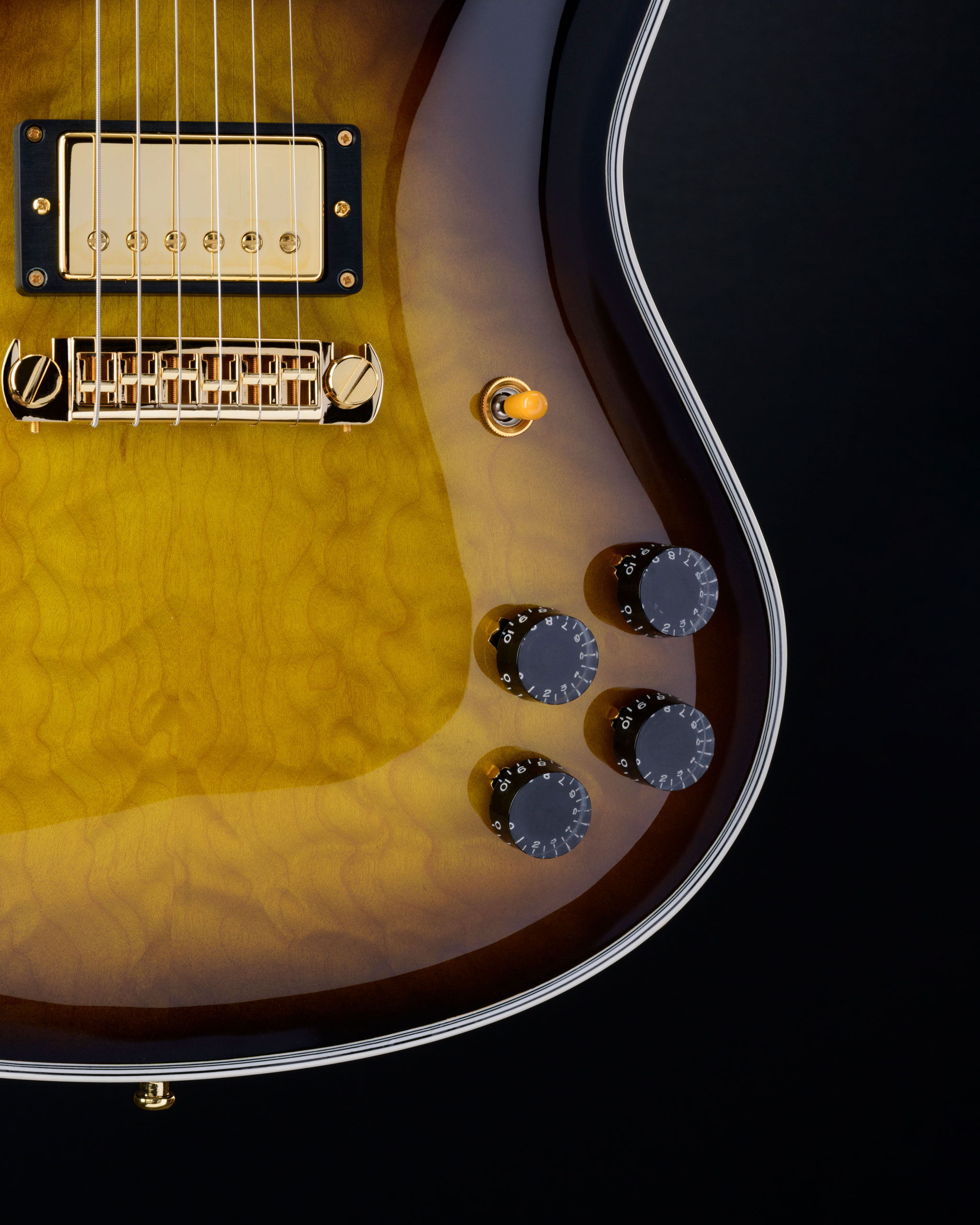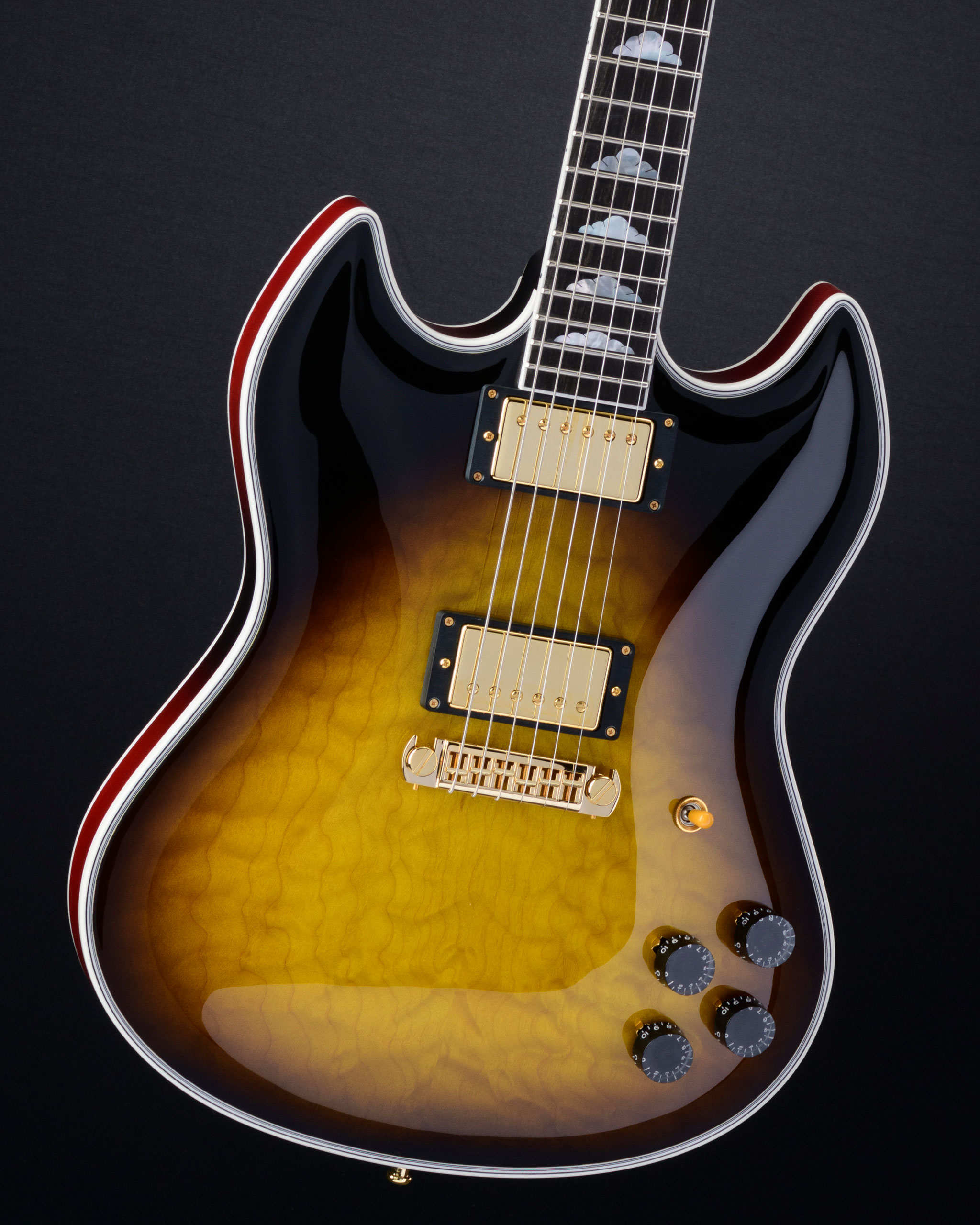 Quilt Maple Archtop YG Deluxe with German Burst Finish.