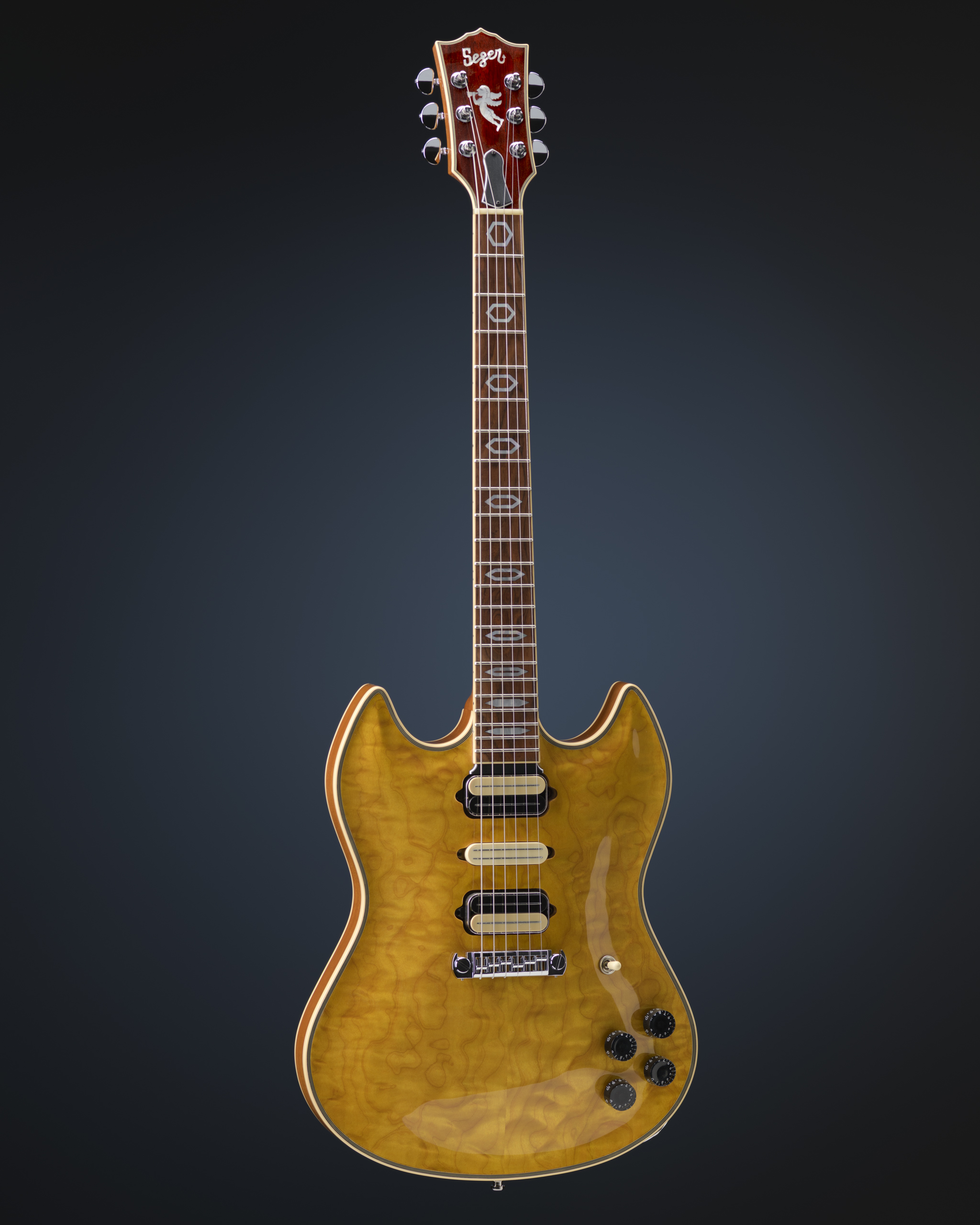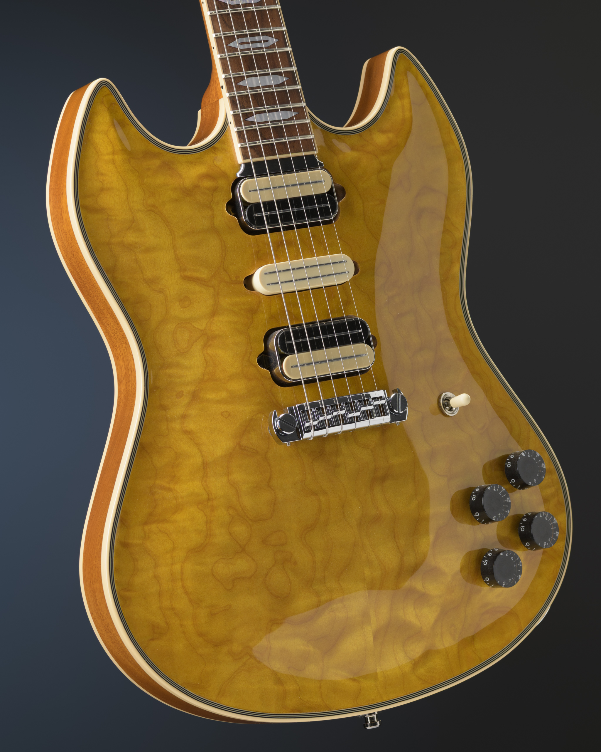 HSH Amber Quilted Maple Archtop with Bill Lawrence pickups.