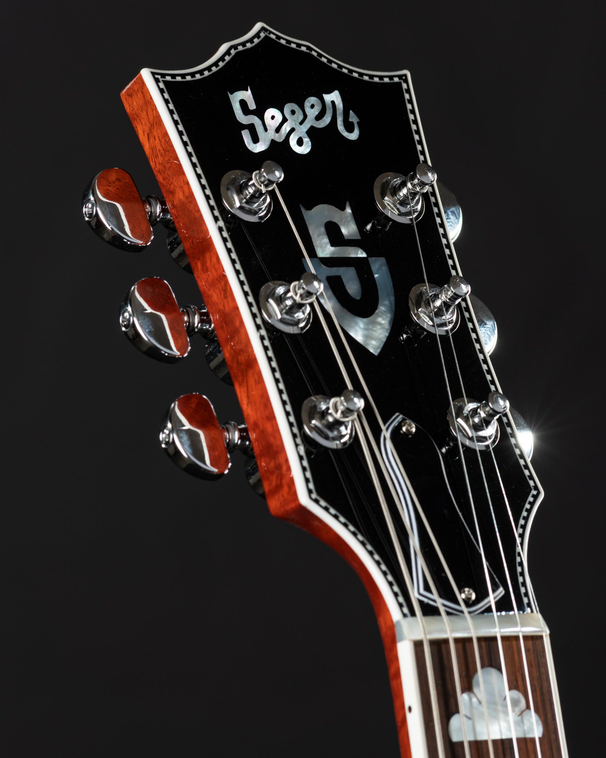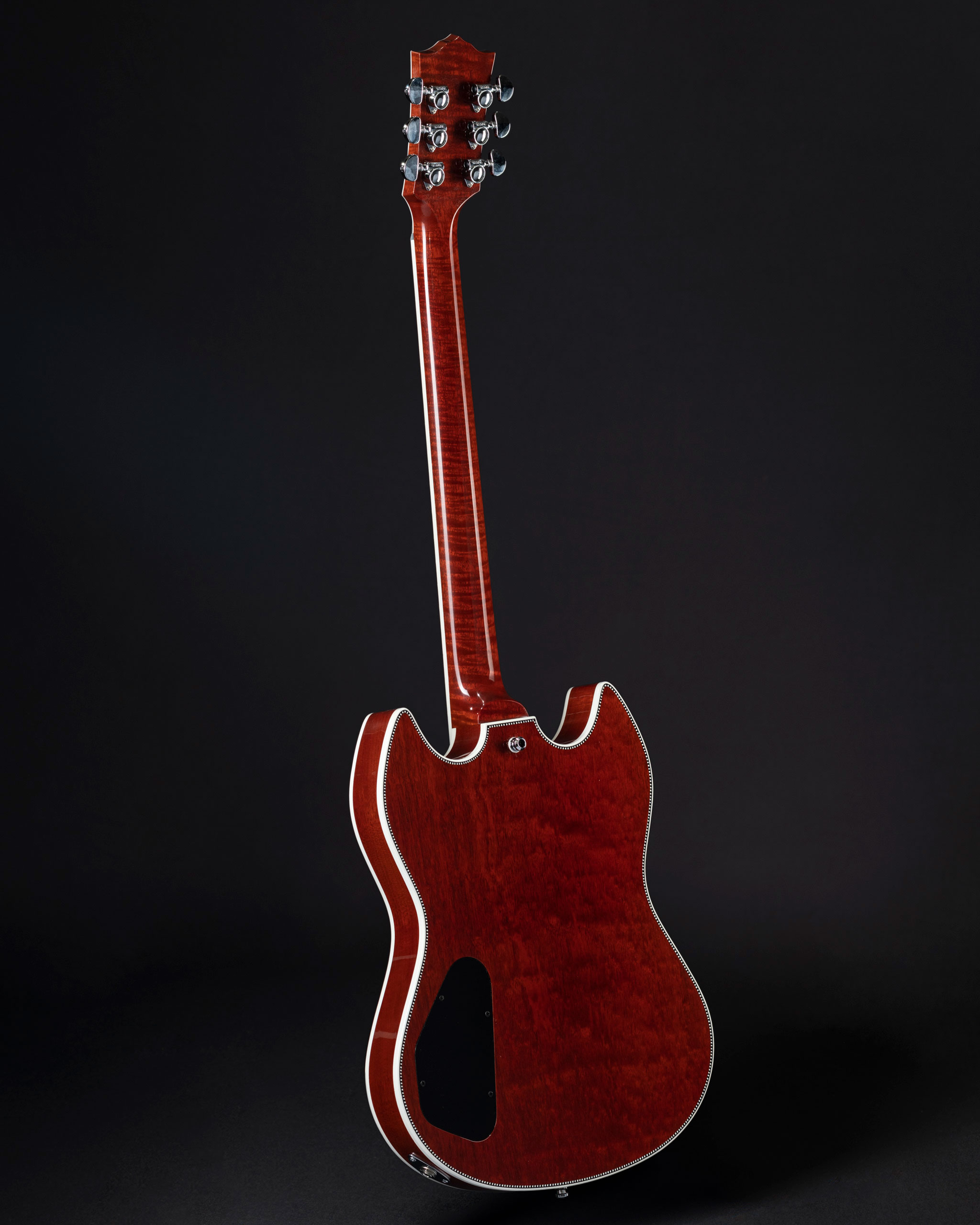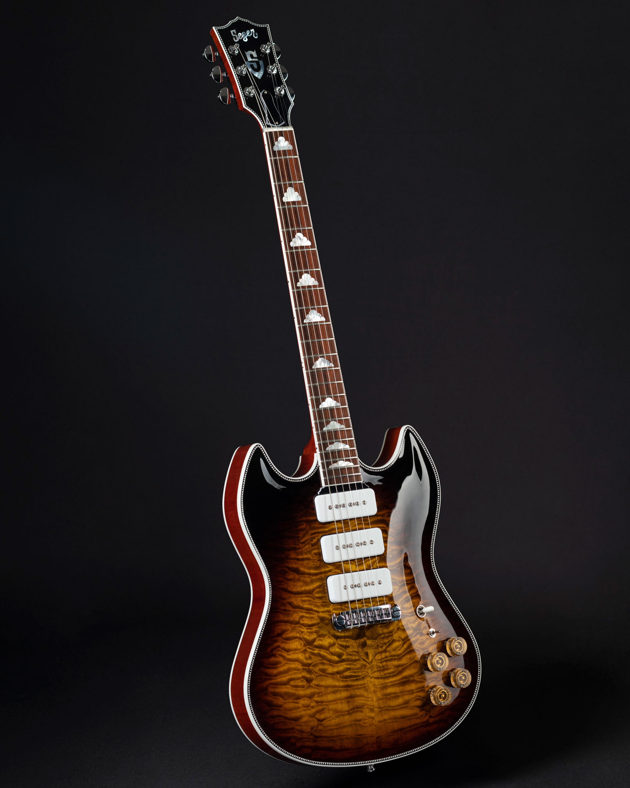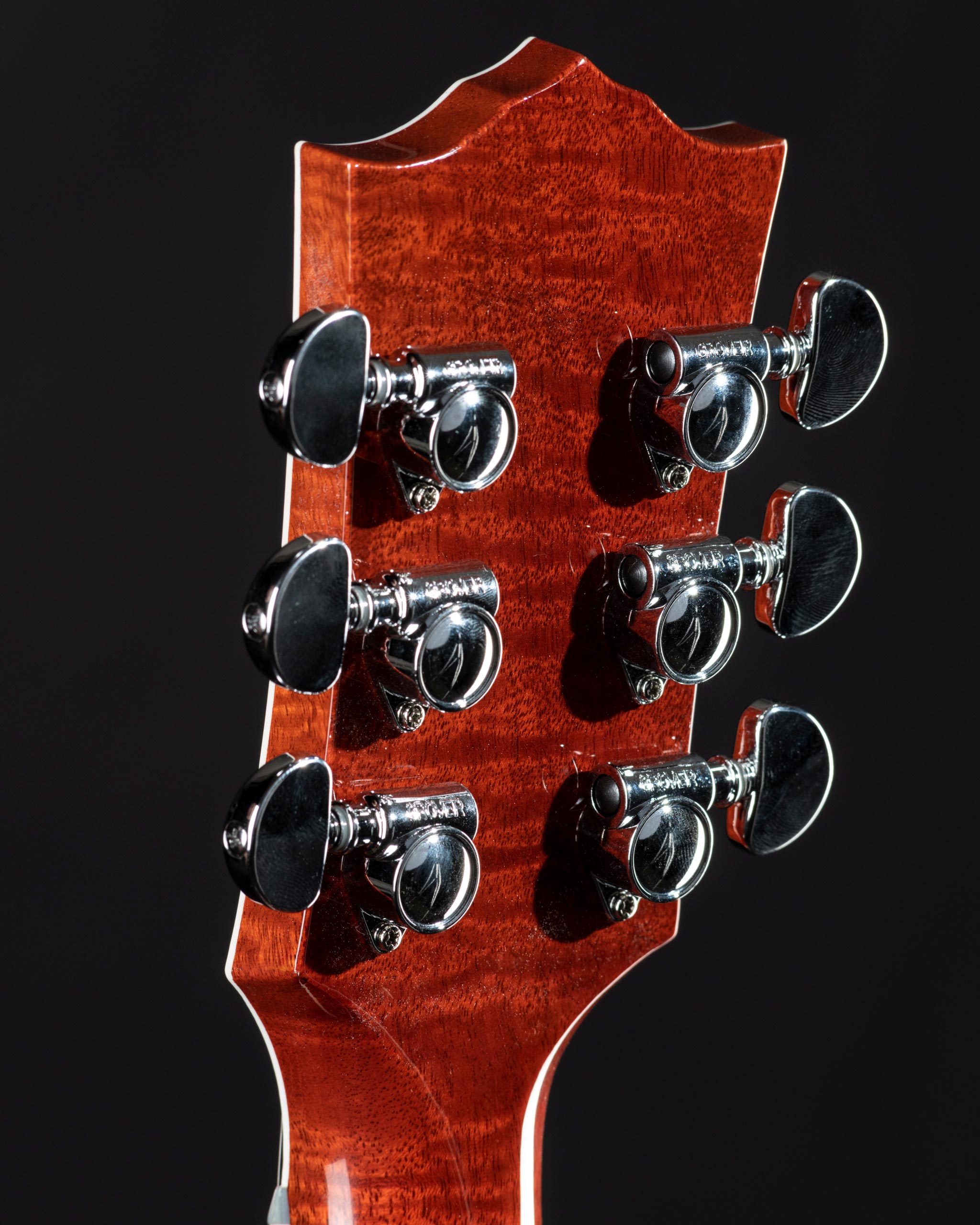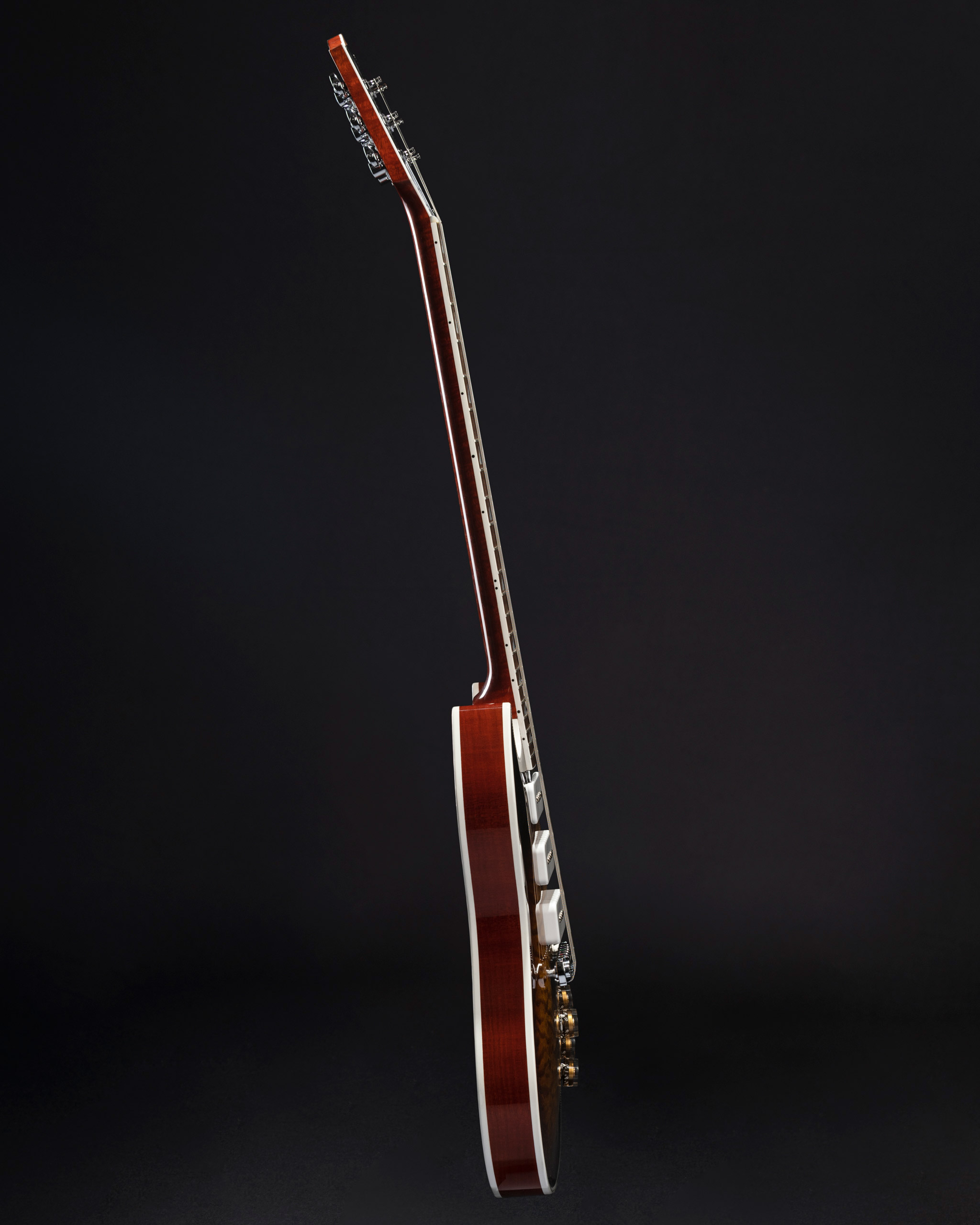 Tobacco Burst YG with Big Leaf Quilted Maple archtop and flame Honduran Mahogany body and neck.
