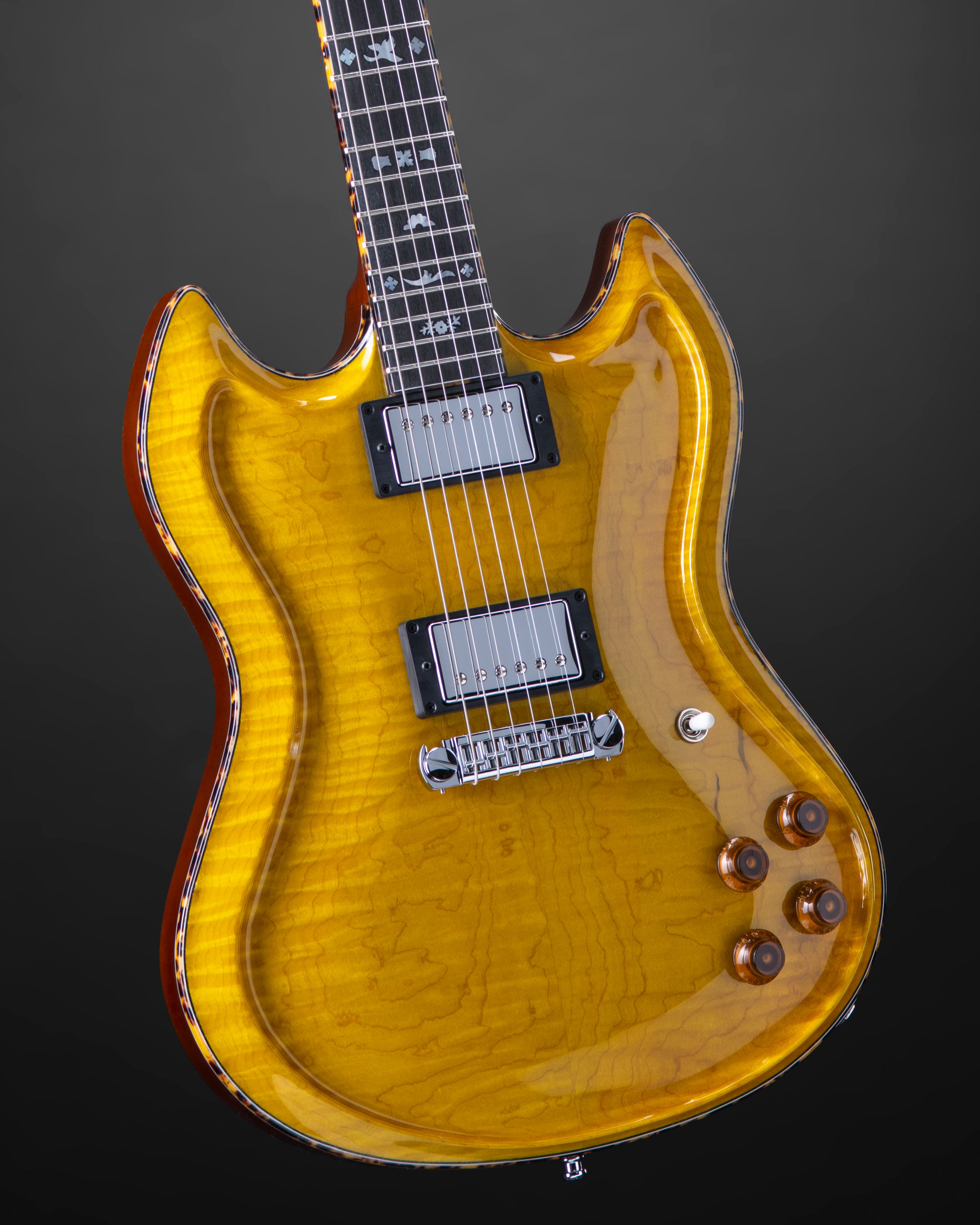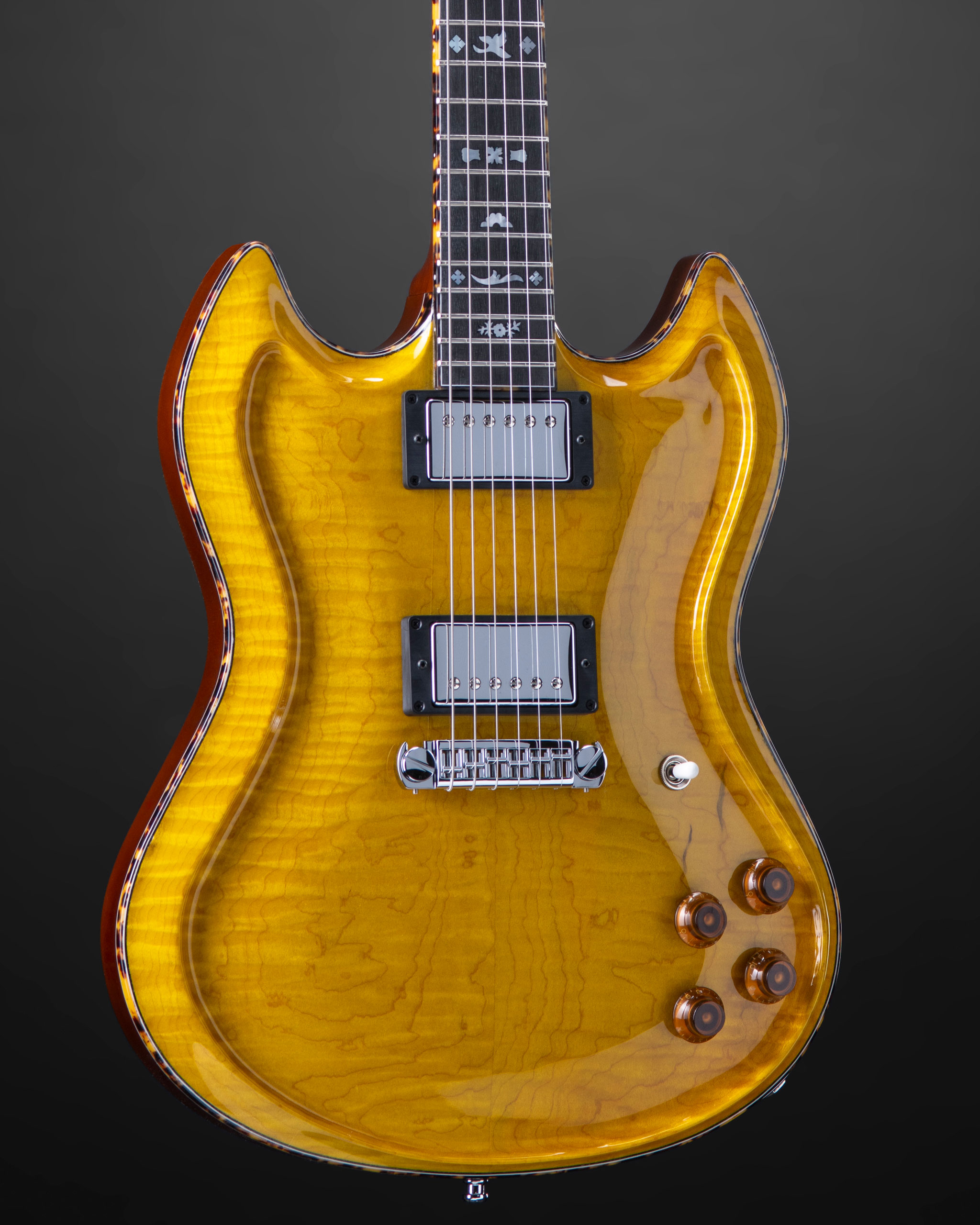 YG with Curly Maple German Carve top and Maine Linden body.