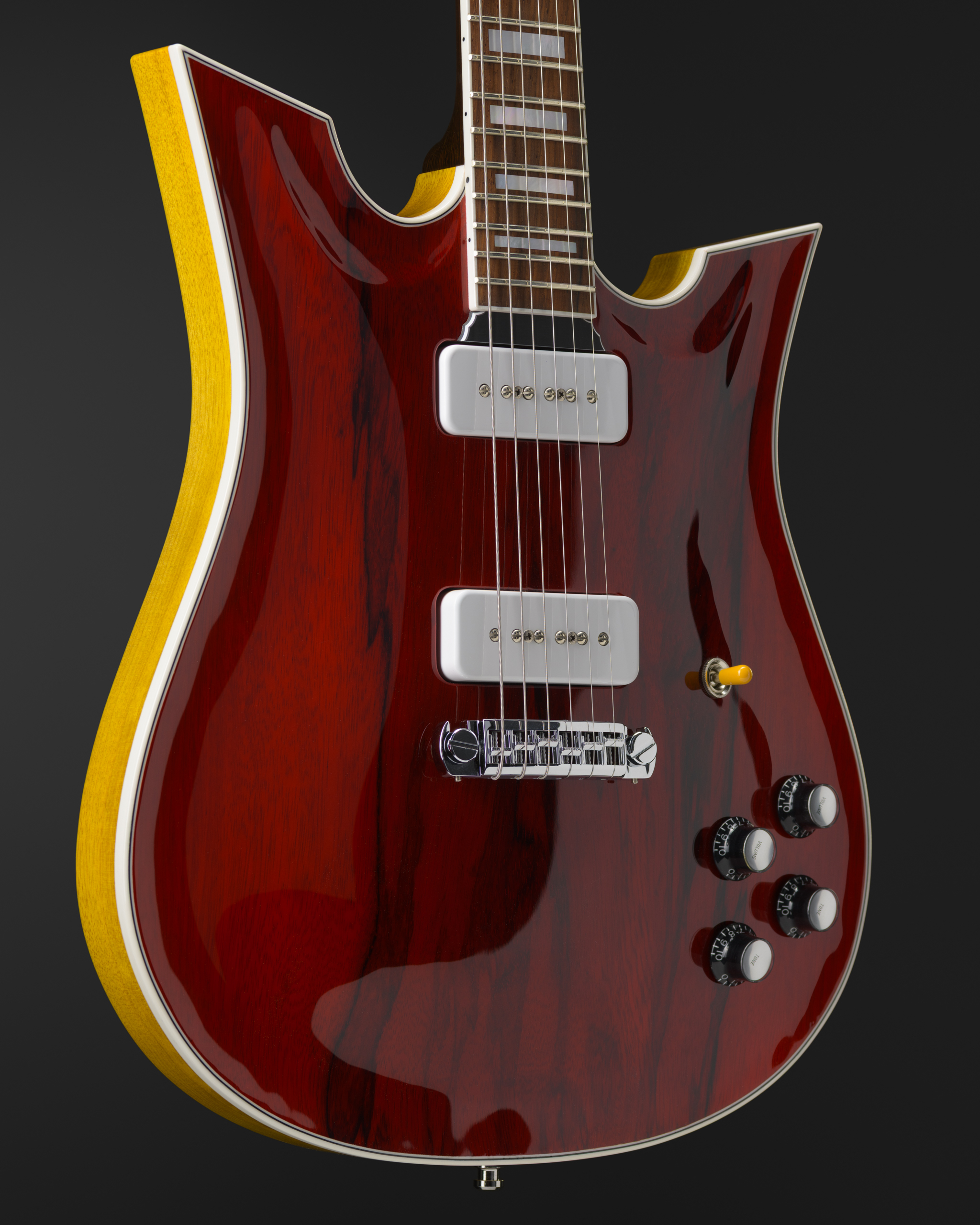 Red Korina Archtop, Korina Body, Wenge & Korina Neck with Hog Headstock Inlay.