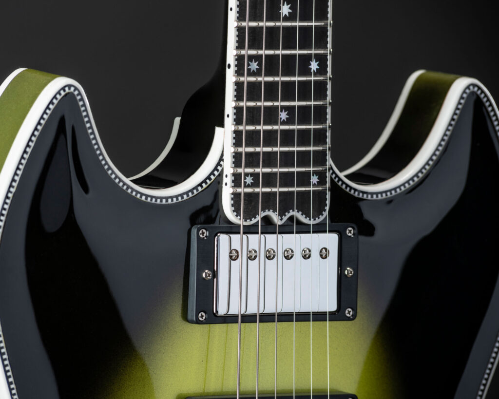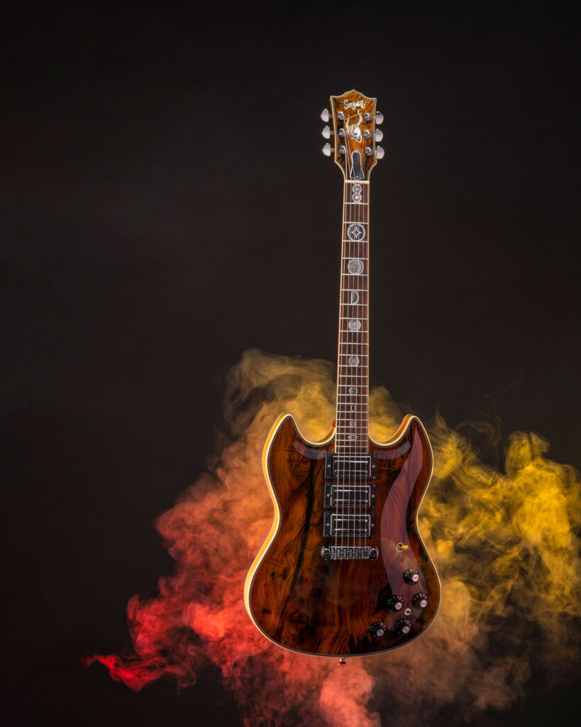 Genuine Mahogany Neck with Accent Laminates and Hand Carved 5A Flame Top
